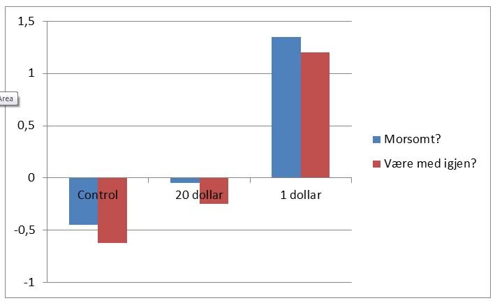 Resultatene bekreftet også dette. De som fikk betalt 20 dollar sa etterpå at oppgaven 1) var kjedelig og 2) at de helst ikke ville delta på liknende eksperiment.